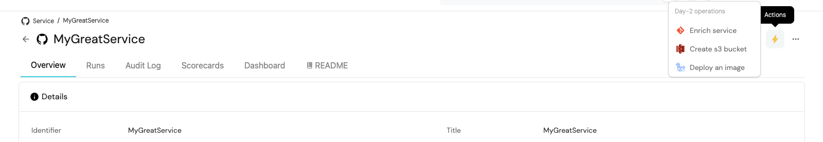 Actions that are tied to a specific blueprint can be executed directly from any entity page that is based on that blueprint.