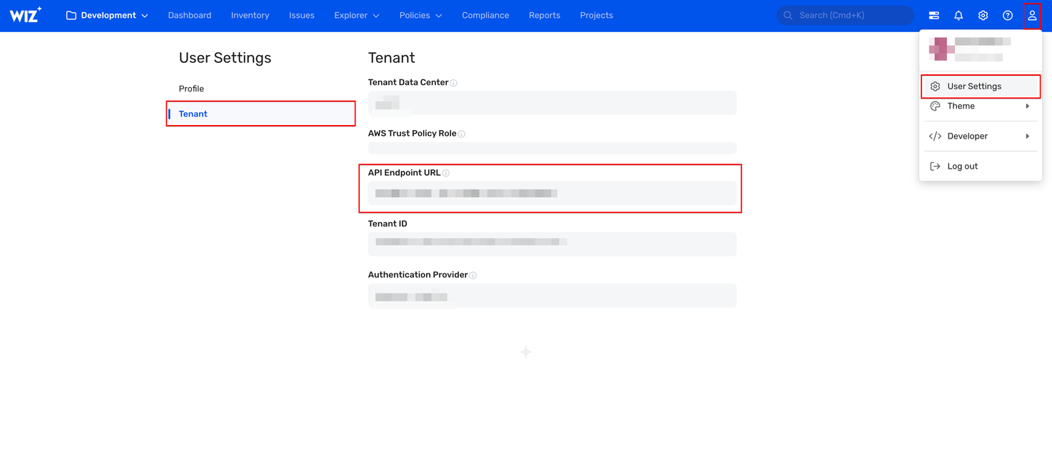 • Wiz API URL (API Endpoint URL)
