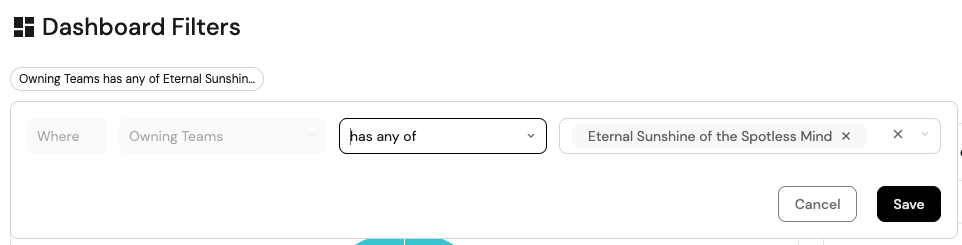 • Use the My Teams option to dynamically filter entities relevant to the current user.