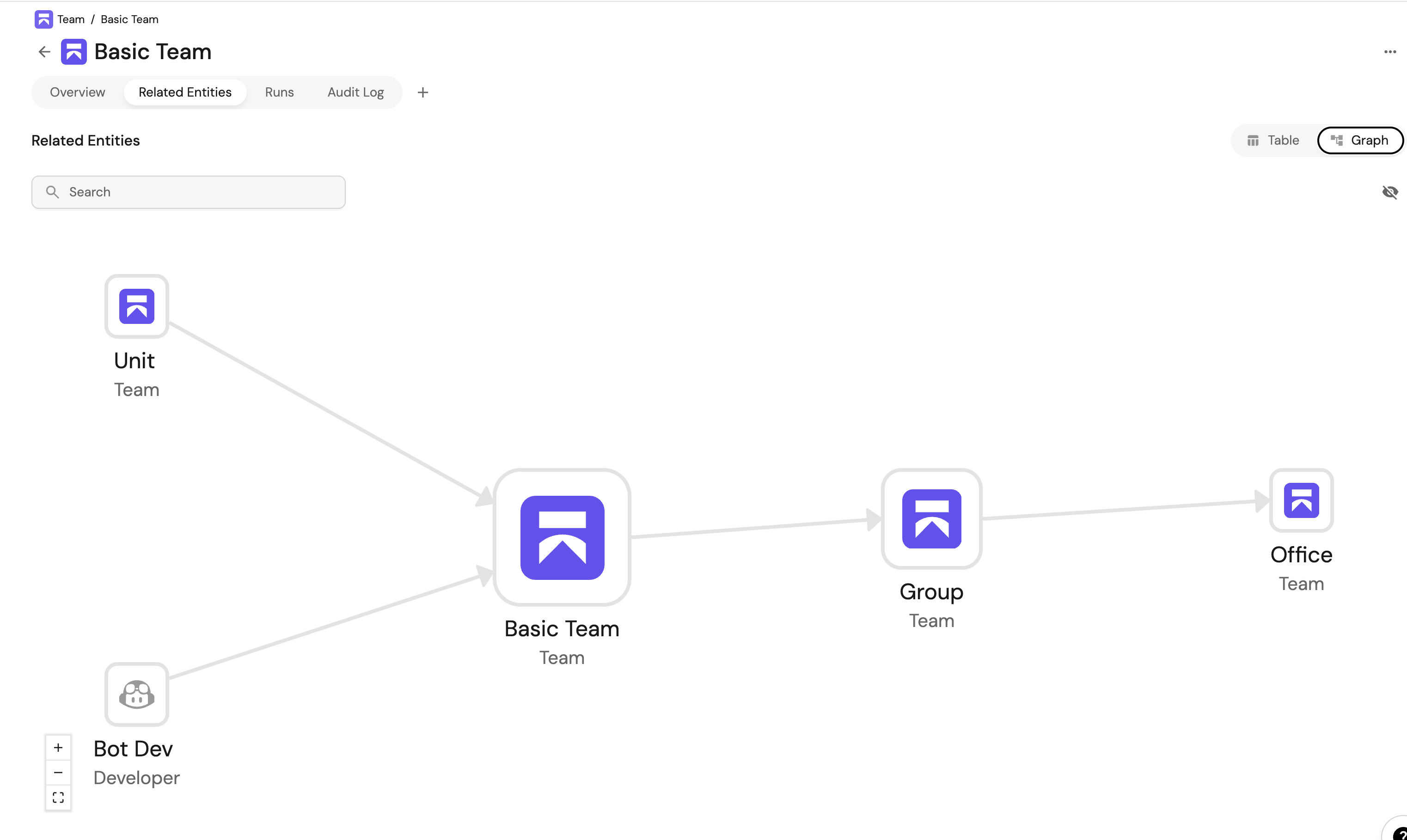 In this example, the system will traverse 2 fixed hops (Unit โ†’ Basic Team โ†’ Group) and then continue with up to 3 additional hops using the team_self_relation, starting from where the fixed hops left off. This could represent a complete organizational hierarchy from Unit all the way up to higher-level organizational structures.