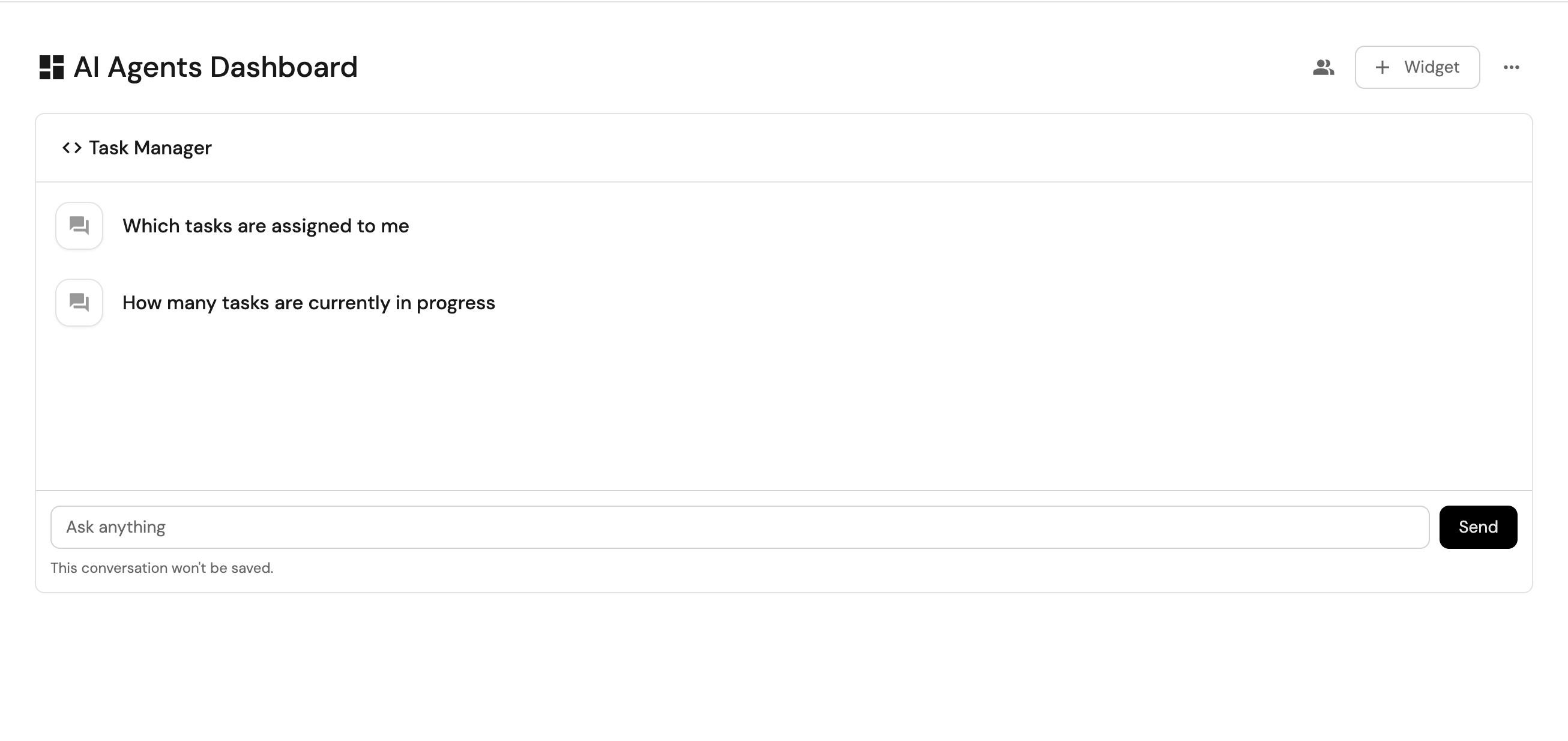 You can interact with the task manager AI agent in several ways.