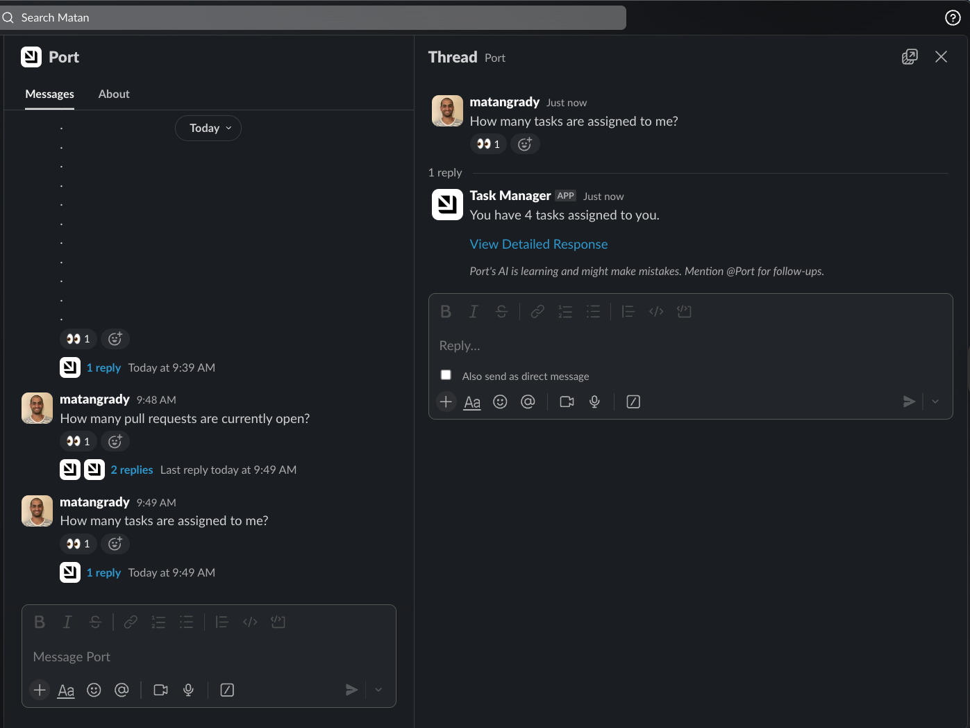 - Direct message the Port AI Assistant.