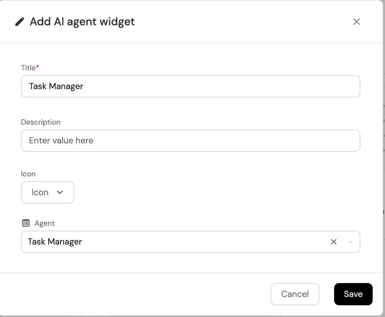 The Task Manager AI agent can be accessed through an AI Agent widget in your Port dashboard.